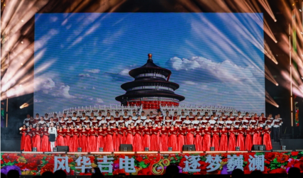 晚会以“风华吉电 逐梦巍澜”为主题,共分为四个篇章,分别是寻梦·回眸甲子、青春·绚丽华章、奋进·砥砺前行、扬帆·相约未来。